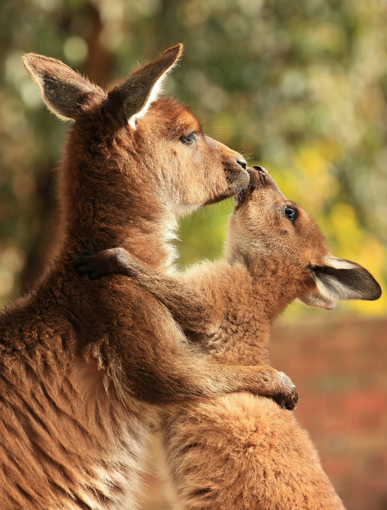 Mother Kangaroo Hugging Her Joey